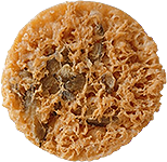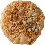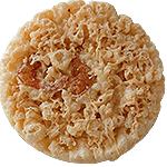 直径約95mm、重量約27gでスライス状にカットしたごぼうをトッピングした天ぷらです。